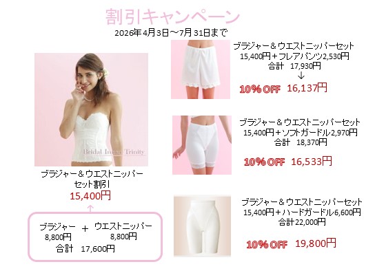 3点セットなのに、式場で勧められたものよりかなり安く、それでも価格以上に品質に満足してます。苦しくない程度に締め付けてくれ、ウエストがスッキリしました。挙式は来年ですが、当日が更に楽しみになりました。ありがとうございました。